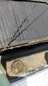 雨樋の中に落ち葉や小枝や泥がびっしりと溜まっていました。