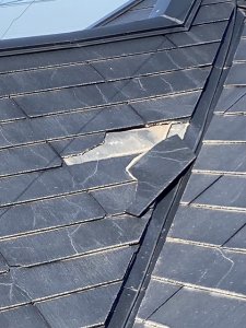 コロニアルが割れてしまい、ズレて谷部分へ落ちてしまっています。
