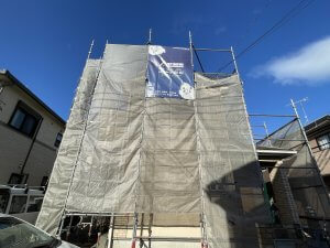 深谷市上柴町東にて足場設置が完了し、コーキング工事が始まりました!