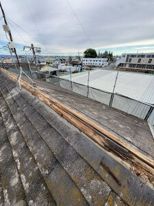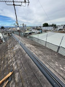 棟板金を外すと下地材(貫板)があり、貫板も撤去していきます。