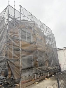深谷市宿根にて足場設置が完了し、棟板金交換工事を行いました!