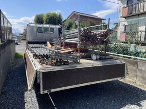 ・鉄パイプや板などを運び込みます。