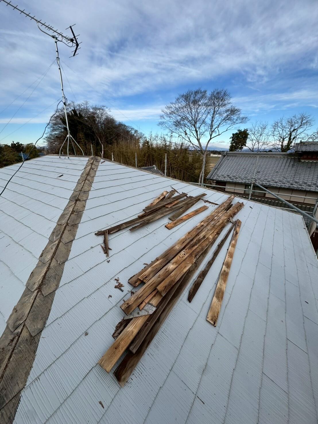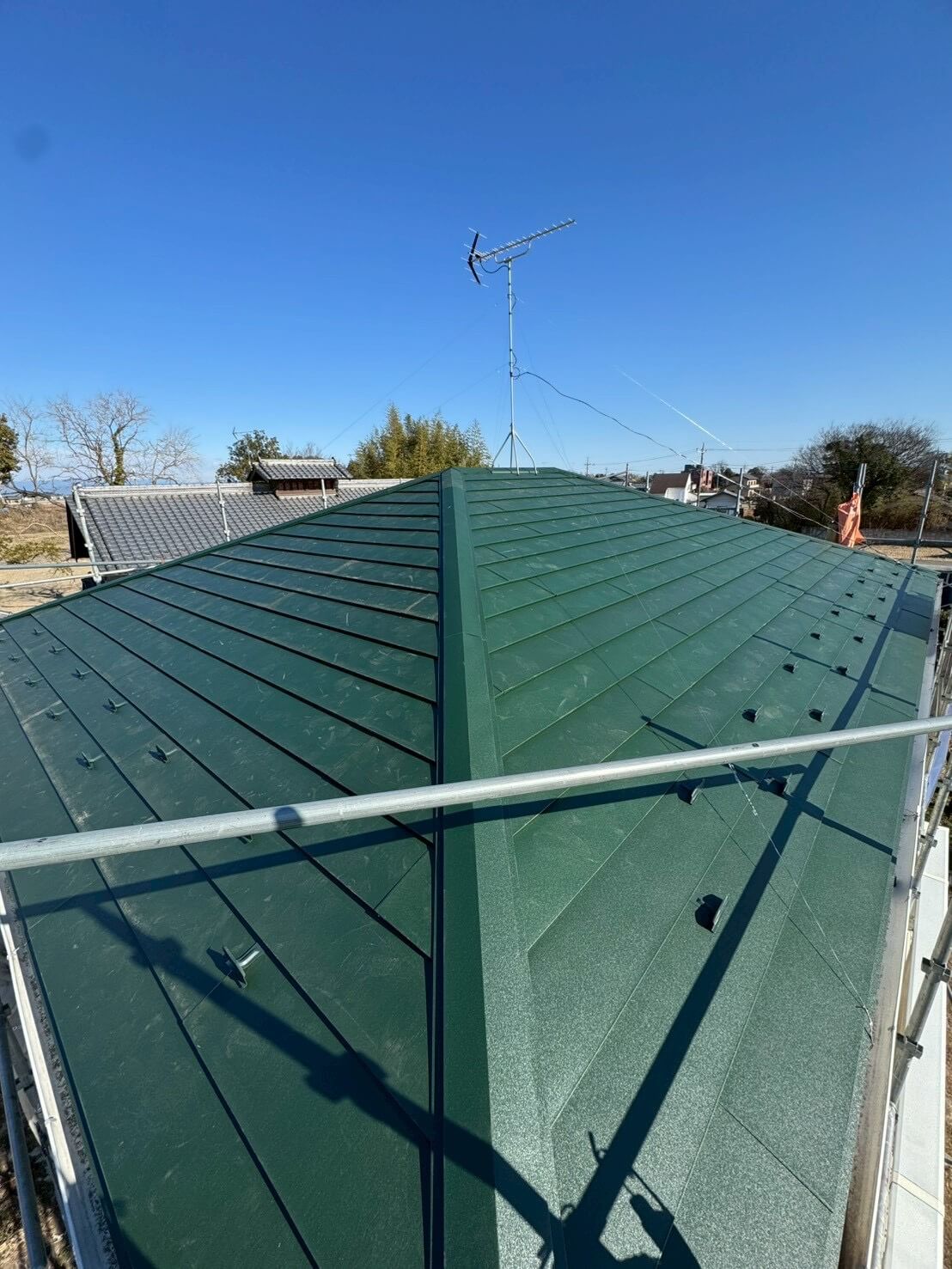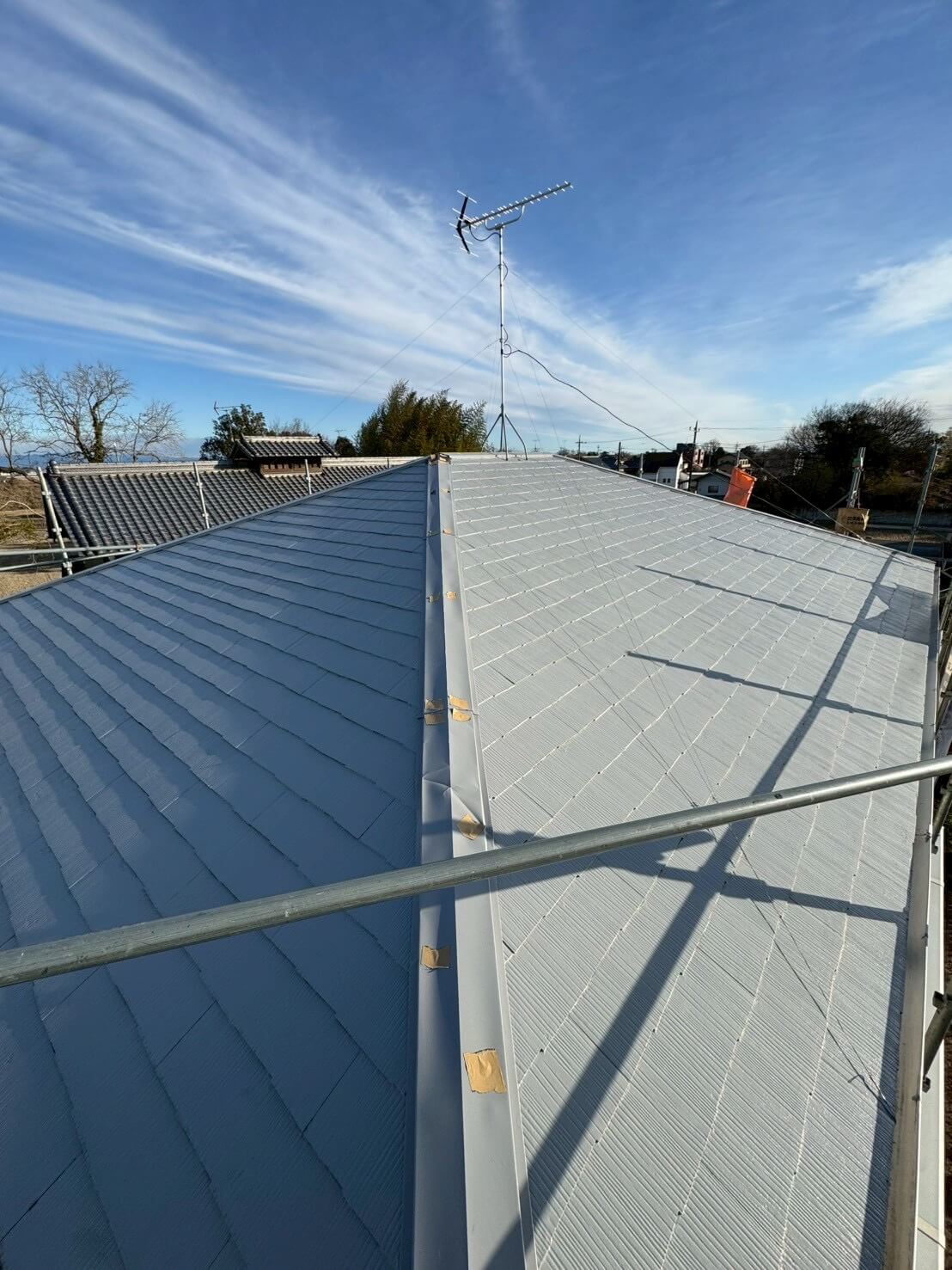 応急処置をした後、屋根カバー工法を施工させて頂きました。