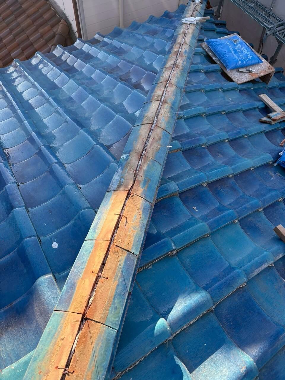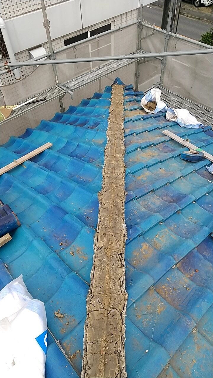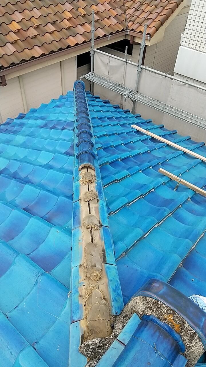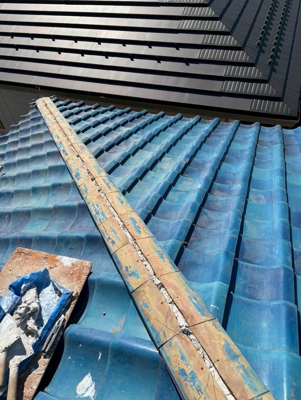 熊谷市 万平 店舗 屋根修理 棟積み替え工事 漆喰工事